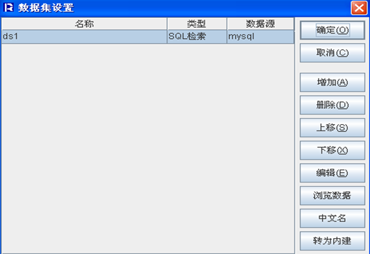 第二步:然后用报表设计器连接一个数据源(配置—数据源—新建—关系型数据源)然后连接,然后建个报表