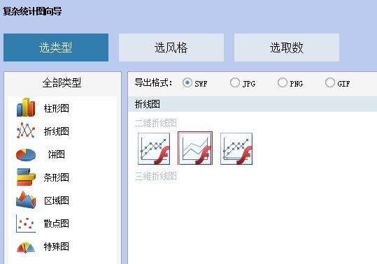 接下来就是统计图的设置了,先选择统计图类型:二维falsh多系列双Y折线柱图