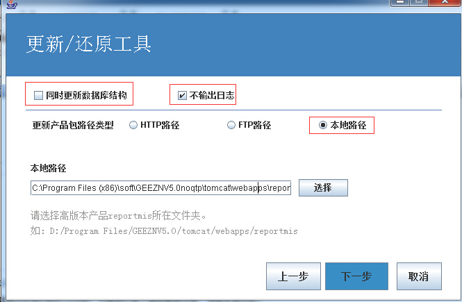 这里以本地升级为例,选择其他方式根据提示输入需要的参数即可。